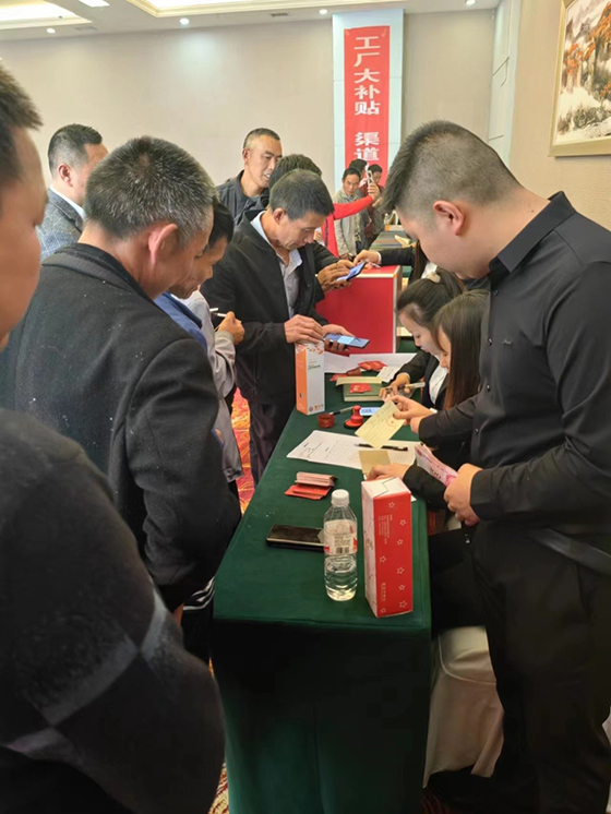 作為以星心陶瓷瓦合金系列為主打產(chǎn)品的貴州思南,其實(shí)他們更多的關(guān)注是在零售終端,其90%的客戶來源于抖音等網(wǎng)絡(luò)平臺,相對而言工長渠道端一直是其薄弱的環(huán)節(jié)。而現(xiàn)在,正是這個(gè)主要做合金做零售的人,卻趕在很多專做星心瓦的傳統(tǒng)經(jīng)銷商之前,率先開啟了無縫瓦Ⅱ代的力推節(jié)奏,在公司的支持下自費(fèi)近萬元在當(dāng)?shù)鼐频昱e辦了首場星心無縫瓦Ⅱ區(qū)域新品發(fā)布會!并一舉大獲成功!